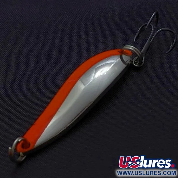 Vintage Acme Fiord Spoon, Nickel, Orange, 1/4 oz (7 g), Stamped, #24458