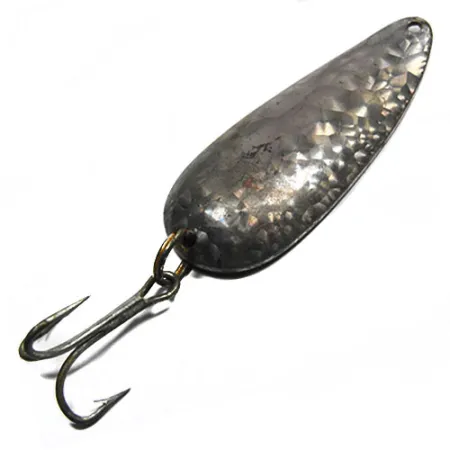 Hammered facets across the body of this 3/4 oz (21 g) spoon catch light at every angle, emphasizing the Crystal (Silver Scale) finish. This Eppinger Dardevle Dardevlet, identified as product code 0342, measures 2 3/4" (7 cm) and represents the classic American lure design that Lou Eppinger pioneered starting in Detroit. The specimen sits at a 4/5 condition rating, showing a well-maintained surface that highlights the proprietary die-stamped concave shape. This specific geometry creates a reliable wobbling action when retrieved, a characteristic that made these lures famous since the early 1900s. The silver scale pattern provides the high-flash profile ideal for clear water conditions where lighter colors excel. Secured by the original split ring, the treble hook is intact and sharp, typical of the heavy-duty hardware used during the Dearborn, Michigan production years.