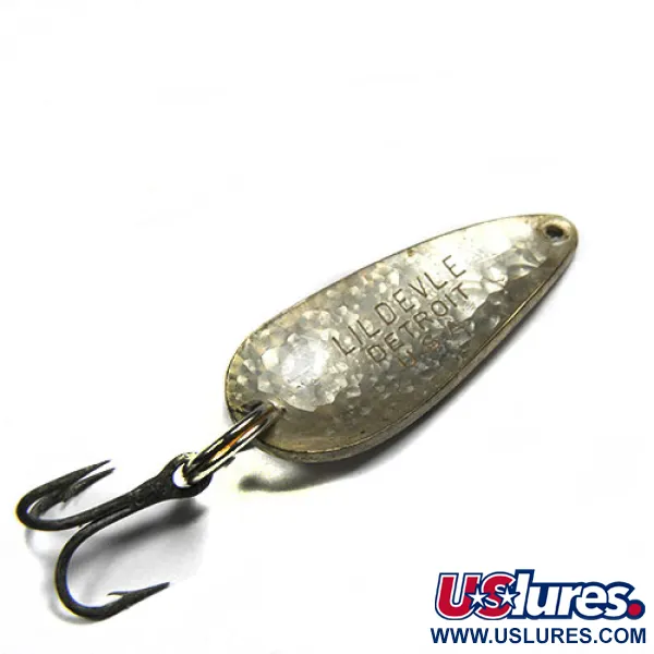 Scaled texturing catches the light beautifully on this 1/8 oz (3.4 g) casting spoon, reflecting the classic craftsmanship we've come to expect from Eppinger. Measuring a compact 1 1/4" (3 cm), this Dardevle Lildevle in the Crystal (Silver Scale) finish is a versatile choice for panfish or light-tackle trout setups. Eppinger has been refining these designs in Michigan since Lou Eppinger started in his basement back in 1906, and that history shows in the solid construction of the 0335 model. The concave body is paired with a sharp treble hook, secured by a sturdy split ring, making it ready for the water. Its finish shows a subtle aging that gives it a true vintage character while remaining in 4/5 condition. Whether you are fishing clear streams or pressured ponds, the silver scale pattern provides a high-flash profile. This specific Lildevle remains a testament to why these USA-made lures were once trusted components in aviation survival kits; they are built for reliability and results.
