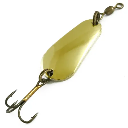 Gold plating gleams across the teardrop-shaped body of this 1960s American classic. Weighing 1/3 oz (9 g) and measuring 1 1/2" (3.5 cm), the specimen 5762 reflects the high manufacturing standards of the Glen L. Evans company out of Caldwell, Idaho. The reverse side features a deep, legible stamp detailing the manufacturer and the "SUNBEAM" model name. Many collectors consider this specific design the functional forefather of the contemporary Wob-L-Rite. The hardware remains robust, featuring a top-mounted barrel swivel and a tail-end treble hook. Rated in 5/5 condition, the polished gold surface is remarkably clean for a lure of this age. Its compact, dense form is designed for effective casting distance and depth control during a retrieve.