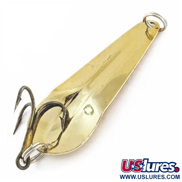 Measuring 2 3/4" (7 cm) in length, the teardrop-shaped body of this gold spoon provides a classic profile for freshwater casting. A weight of 2/5 oz (12 g) allows for versatility in various depths. Stamped into the concave interior is the Haver name, reflecting the design’s origins with Percy Haver in the early 1930s. The gold-plated finish on this James Aitken production remains clean and reflects light effectively. Product Code 24473 is preserved in 5/5 condition, showing the refined stamping and smooth edges expected from this manufacturer. The heavy-set tail and narrow nose create the traditional weight distribution characteristic of the era.