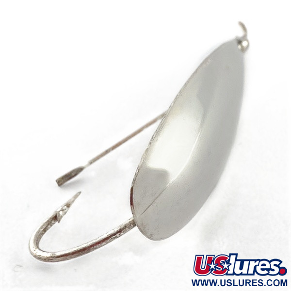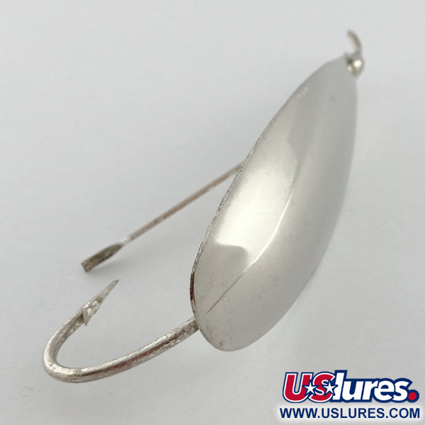 The Johnson Silver Minnow is a successful fishing lure invented in 1920 by Louis Johnson. To overcome the problem of fishing in a weedy lake, he developed a lure that imitates the movement of a minnow and integrated a guarded hook onto the spoon which was plated with real silver for a brighter flash. Johnson's design featured a special copper/zinc alloy spoon that was thicker in the middle, which caused the lure to rock back and forth, keeping the hook facing up and reducing the chances of catching weeds. This rocking motion also made the lure visually effective underwater and eliminated the need for swivels to prevent line twist. The Johnson Silver Minnow was the first lure to use real silver for a whiter, brighter flash than chrome or polished steel. The use of real silver plating also sets it apart from other fishing lures. The rocking motion of the lure also creates flashes of reflection from the silver in the water, making it more visible to fish. This, combined with the guarded hook design, made the Johnson Silver Minnow an enduring and successful fishing lure. The Johnson Silver Minnow's rocking motion causes it to rock back and forth through a 270 degree angle, creating flashes of reflection from the real silver plating in the water. This flashing is most effective as it is directed downwards and to the sides, as fish typically attack lures from below or the side. This design feature adds to the lure's effectiveness in catching fish. The Johnson Silver Minnow is a deadly fishing lure that can be used on its own or with a trailer for added effectiveness. Its unique rocking motion makes it more attractive to fish and is not affected by the use of a trailer like many other spoons are. A popular combination is using a pork rind trailer in red/white or yellow/white, as it imitates the red gill rakers of a wounded or distressed baitfish, which can act as a visual 'dinner bell' to predatory fish that prefer to attack slower, wounded prey over fast and healthy ones.