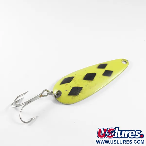 Museum Archive: Vintage Len Thompson #1, 3/4oz Five of diamonds (Yellow / Black / Brass) fishing spoon #1748