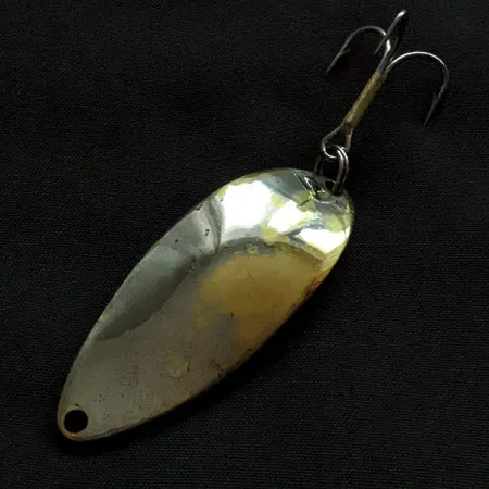 A striking nickel and brass two-tone finish defines this classic spoon, a characteristic that pairs with its substantial weight of 2/3oz (18g). Measuring 2 1/4" (5.5cm) in length, this specific specimen, cataloged as product code 22214, is a genuine piece of angling history from the Seneca Lure Company. It dates back to the era before the brand was acquired by Acme in the early 1980s. Collectors prioritize the "Hula Girl" variant for the iconic dancer engraved on the reverse side—a detail omitted from modern productions. Many veteran anglers still swear that this small engraving was the secret to the lure's legendary success on the water. The hardware remains functional, featuring a sturdy treble hook attached via a robust split ring. Rated at a condition of 3/5, the body shows honest signs of a long life, with the dual-metal plating still catching the light effectively. This USA-made casting spoon represents the original design of a lure that remains a staple for trout and salmon fishermen.