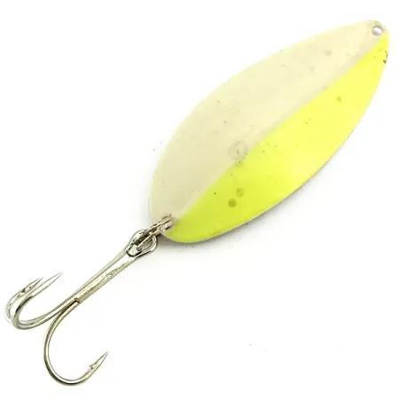 Museum Archive: Vintage TODDCO Main liner Glow UV, 3/4oz White / Yellow / Nickel fishing spoon #5698