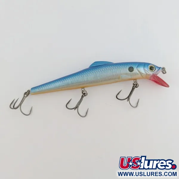Напівпрозора червона лопать контрастує з блакитно-сріблястим корпусом цієї приманки Matzuo Muskie Big Dog Floating. Текстуроване покриття Reflective Color детально відтворює луску, доповнену золотистим відливом на черевці. Маючи вагу 1/2 oz (14 g) та довжину 4 3/4" (12 cm), виріб оснащений трьома міцними трійниками, рівномірно розподіленими по тілу. Модель із кодом товару 24450 розроблена для технік кастингу та тролінгу. Стан приманки оцінюється як 5/5, що свідчить про чистоту лакофарбового покриття та цілісність фурнітури. Велика контрастна точка поблизу очей завершує візуальний профіль цього плаваючого мінноу.