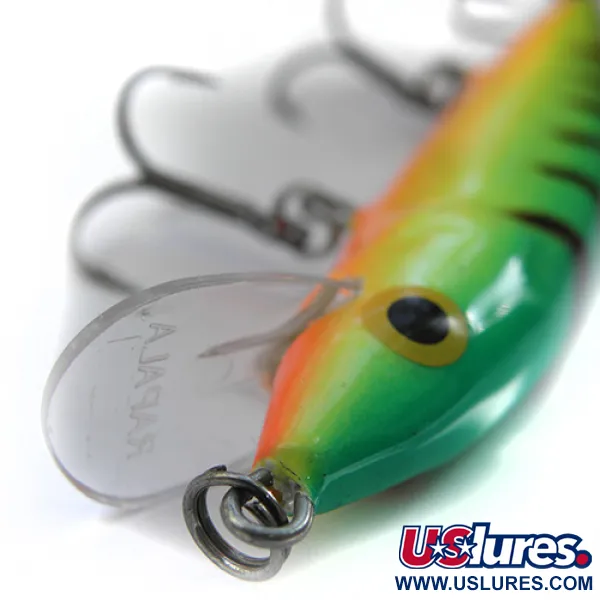 Museum Archive: Vintage Rapala Husky Jerk, 2/5oz Green / Yellow / Orange=Black Stripes fishing lure #0089