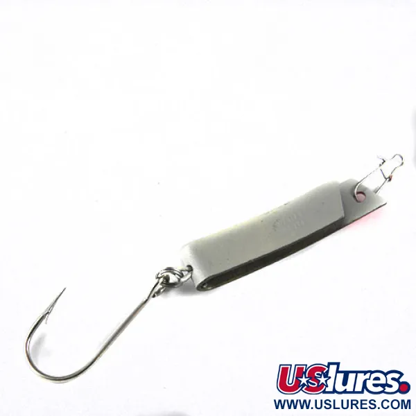Measuring 1 3/4" (4.5 cm) in length, the unique U-shaped body of this South Bend Super-Duper 506 is a testament to clever American metal-folding design. The paint scheme consists of a solid white body with a high-visibility red accent at the top, which holds a functional wire snap for quick line attachment. At the opposite end, a large, single long-shank hook is secured by a sturdy split ring. Bearing the product code 0539, this 1/4 oz (7 g) specimen is a well-preserved piece of USA-made angling history. It remains in 5/5 condition, with the painted surfaces and metallic elements appearing as they did when first leaving the factory.