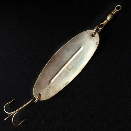 Crafted with a genuine silver plating, this Canadian classic reflects light with a distinct brilliance that only precious metal finishes can achieve. The Williams Wabler, cataloged under product code 14898, incorporates a signature longitudinal ridge along the center of its body to ensure stability through the water column. Measuring 3 1/4" (8.5 cm) and weighing 2/3 oz (18 g), this lure is a staple for anglers pursuing pike and walleye in varied conditions. Its silver-finished surface shows minor signs of previous handling, earning a 4/5 condition rating, yet it retains a clean and functional appearance. The construction includes a reliable treble hook and a top-mounted barrel swivel with a traditional wire-wrapped connection. This specimen represents the long-standing Canadian manufacturing tradition where real silver remains the preferred choice for maximum flash.