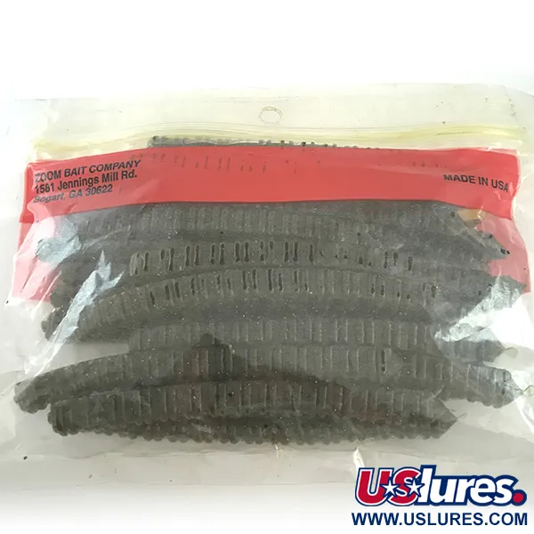 Deep ridges along the entire 4" (10cm) length of this Centipede profile create a distinct, segmented silhouette that has helped define Zoom's reputation in the USA fishing market. Finished in the staple Green Pumpkin colorway, these soft baits are part of the "Super Salt Plus" series, which integrates a heavy salt load directly into the plastic to improve texture and density. This specific 20-count package, cataloged as product code 6595, remains in unused condition, though the resealable bag has been opened. The flat-bottomed construction of the Centipede makes it a legendary choice for Carolina rigging, as it glides efficiently across bottom structure. The packaging retains the original factory labeling, showing the specific 007-025 color designation, which collectors and anglers alike recognize as one of the most effective earth-toned shades ever produced for clear to stained water.